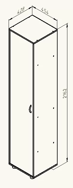 Шкаф однодверный представляет собой красивый и функциональный пенал для хранения личных вещей. Внутри шкафа расположен вертикальный ряд из шести полок. Компактное и удобное, это изделие отлично впишется в уютный интерьер детской комнаты. Шкаф можно собрать с открыванием двери как на правую сторону, так и на левую. Шкаф установлен на регулируемых опорах.