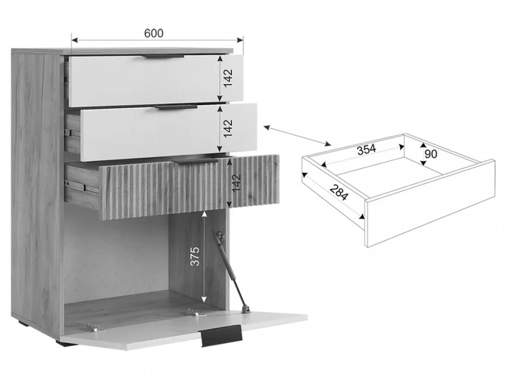 • Фасад ящика акцентный- МДФ 19 мм+ пленка ПВХ