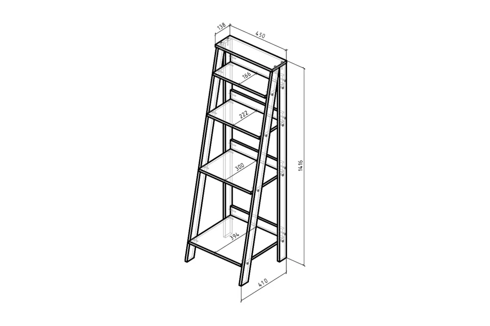 Этажерка лофт 448х427х1416, цвет дуб грей в Тобольске