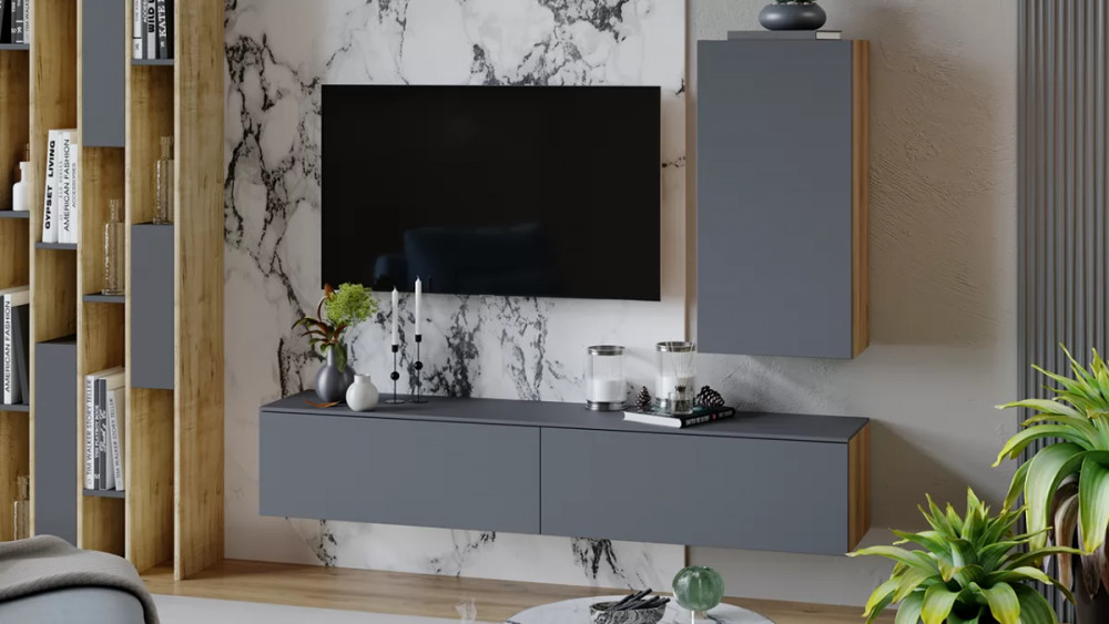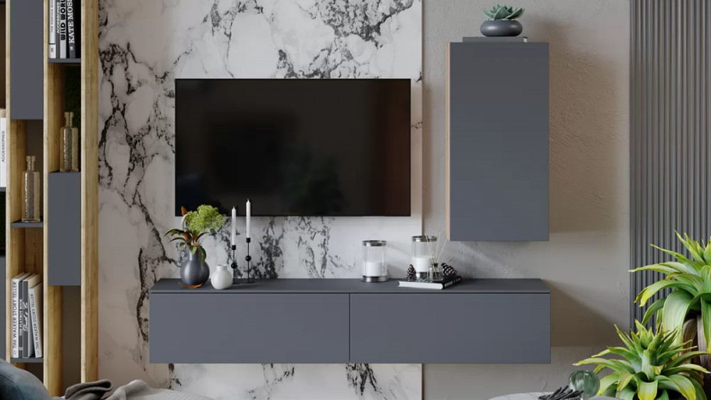 Модульная гостиная «Порто» Яблоня Беллуно, Графит софт в Тобольске