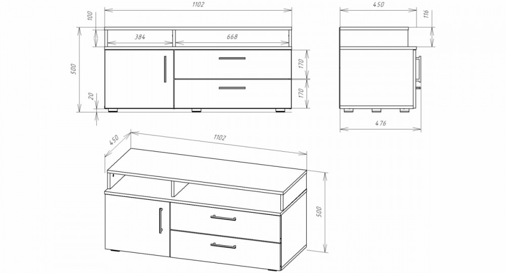 *Размеры (Ш*Г*В), мм:1102*450*500 мм