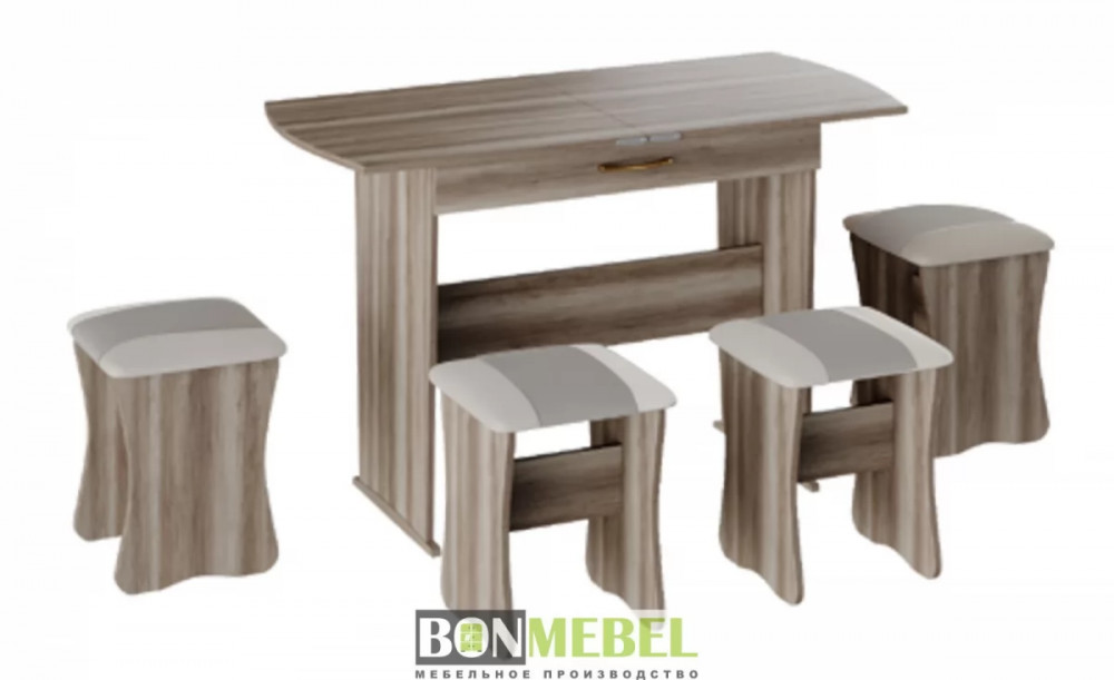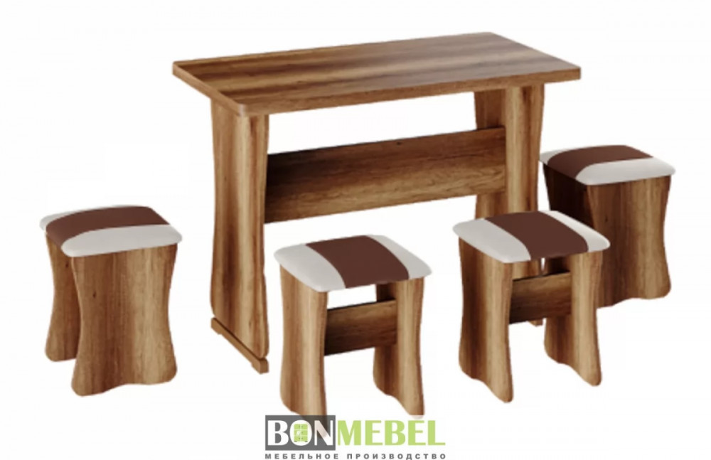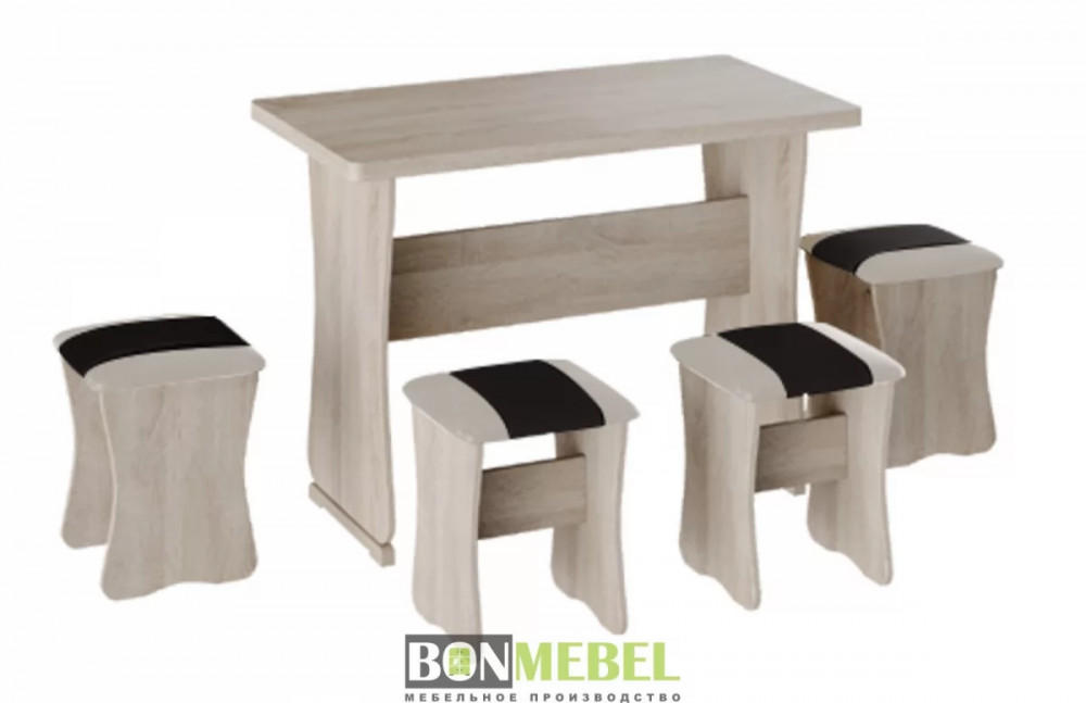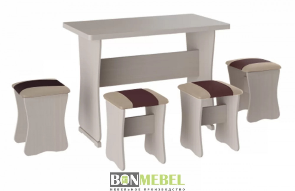Обеденная группа с табуретами Тип-1 поможет организовать небольшую, но вместительную обеденную зону для четырех человек. Обивка из экокожи устойчива к различным загрязнениям и не требует обработки специальными средствами. Мягкие сиденья табуретов имеют мягкое и упругое наполнение, что повышает уровень комфортабельности. Различные варианты расцветки помогут подобрать идеальный комплект. Для изготовления изделий используется прочная ЛДСП. Обивка табуретов выполнена из искусственной кожи.