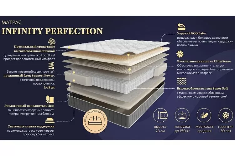 Матрас INFINITY PERFECTION 1600*2000мм (Эколатекс/пена/лен, ср. жесткий, h28см) в Тобольске