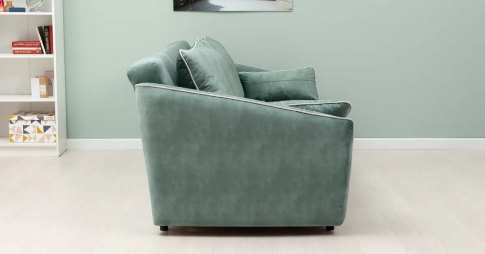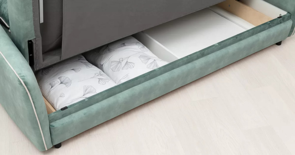 Габаритысложенный (Д x Г х В, мм): -2260 x 1090 x 920разложенный (Д x Г х В, мм): -2260 x 1340 x 750спальное место (Д x Ш, мм): -1980 x 1340высота посадки (мм): -445глубина сиденья (мм): -600высота спинки (мм): -560высота подлокотника от сиденья (мм): -150-300максимально допустимая нагрузка: -240 кг на диванМеханизм трансформации-Книжка с 0 стенойБельевой ящик-есть с перегородкой по центру (2 отделения)размер отделения (Д x Ш, мм): - 890 x 840 x 140Материалыосновная ткань: Greta (велюр)выполняется в тканях: Greta Jade (светлый хвойно-зеленый)/Greta Bone (слоновая кость)каркас: фанера-деревянный брус