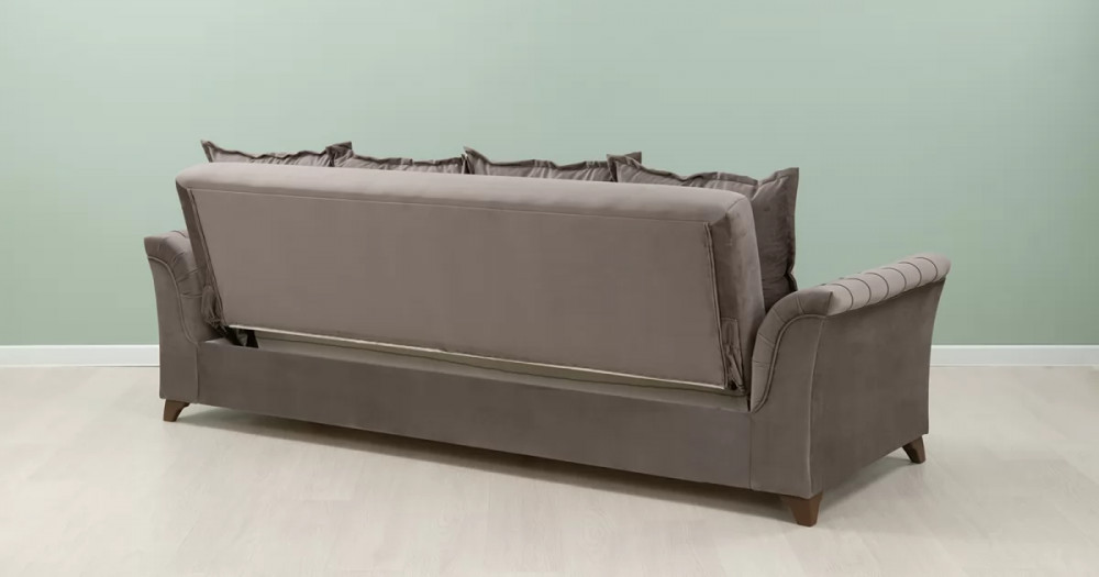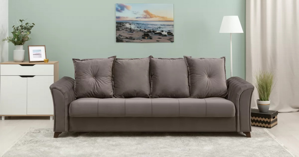 Габаритысложенный (Д x Г х В, мм): 2450 x 1060 x 890спальное место (Д x Ш, мм): 1950 x 1310высота посадки (мм): 460глубина сиденья (мм): 540максимально допустимая нагрузка: 80 кг на одно посадочное место, 100 кг на одно спальное местоМеханизм трансформации-Книжка с 0 стенойБельевой ящик-есть  перегородкой по центру (2 отделения)размер отделения (Д x Ш, мм): 890 x 840 x 200каркас: фанерадеревянный брус