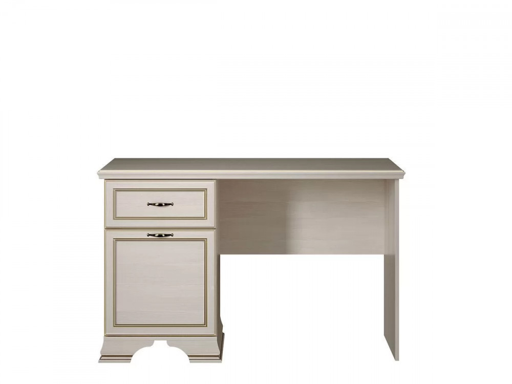 Дизайн стола в классическом стиле позволит ему гармонично вписаться практически в любой традиционный интерьера. Материалы производства ЛДСП и МДФ в виде накладок, декоративных опор и фигурного профиля на столешнице. Золотая патина подчеркивает рельефные детали, а металлические ручки цвета «старая бронза» завершают образ изысканной классической модели.