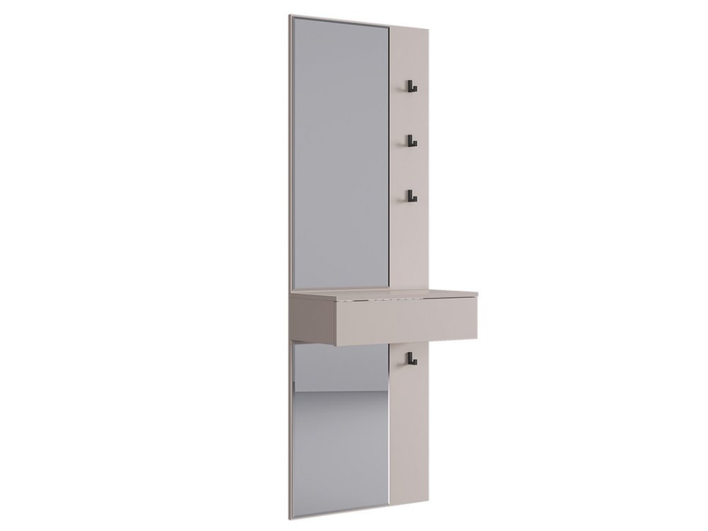 Крючки предоставляют удобное место для хранения сумок или аксессуаров. Выкатной ящик служит дополнительным пространством для хранения мелочей, таких как ключи, кошелек, косметика или другие небольшие предметы.