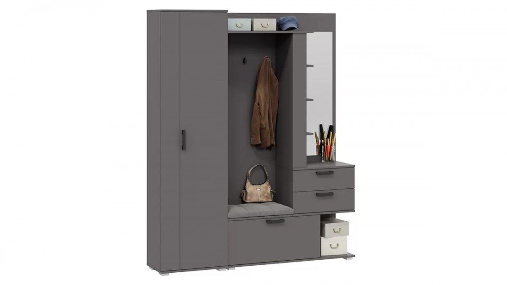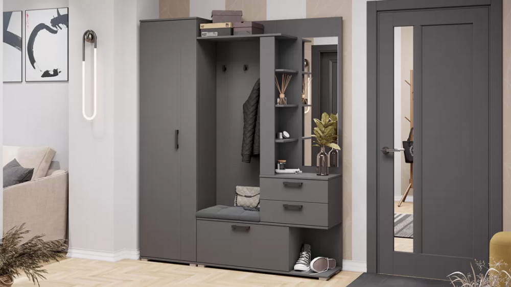 Количество дверей: 1 Зеркало: Да Гарантийный срок: 24 месяца Комната использования: Прихожая Стиль: Современный Тип: Гарнитур в прихожую Расположение: Напольный Тип направляющих ящиков: Роликовые Наполнение: Полки ЛДСП, Штанга, Крючки Материал каркаса: ЛДСП Направление открытия двери: Определяется при сборке Производство: Россия Габаритная ширина: 1 640 Габаритная высота: 1 998 Габаритная глубина: 357 Модель: Эрика Тип 2 Срок службы: 10 лет Цвет: Графит Серый Тип сборки: Универсальный левый/правый Наличие механизма раскладки: Нет Наличие спального места: Нет