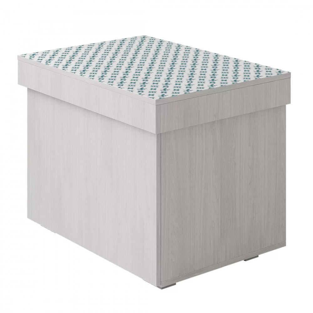 Например, в прихожей она может стать удобной обувницей, а в детской – идеальным местом хранения игрушек. Любая девушка будет рада такой изящной и вместительной «косметичке». Фасад и корпус тумбы выполнены в цвете ясень белый, благодаря чему модель выглядит лёгкой и компактной. Крышка тумбы, на которую фотопечатью нанесён фирменный паттерн, плавно открывается при помощи механизма газлифт. Фасад нижнего выдвижного ящика на шариковых направляющих, полностью закрывает верхнюю полку. Особенностью тумбы являются дополнительные регулируемые полки в верхней и нижней нишах.