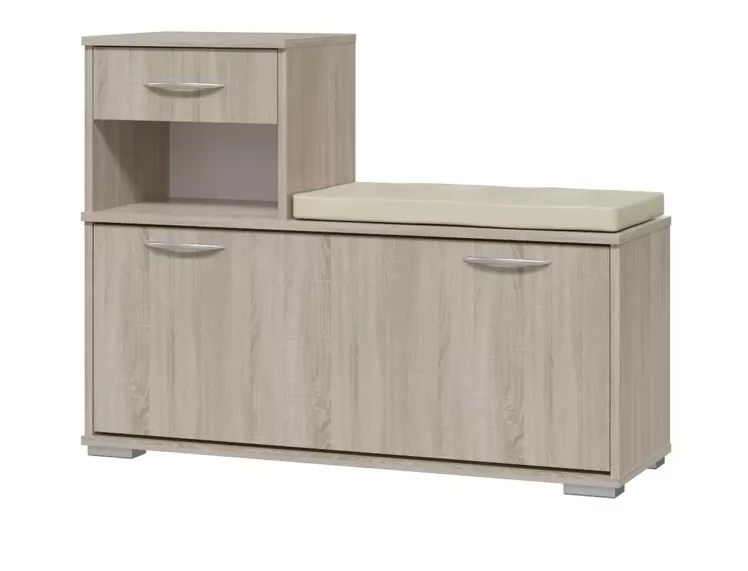 Прихожая "Лира" - компактная мебель для небольшой квартиры. Вешалка оборудована шестью крючками для одежды, антресольной полкой для головных уборов и большим зеркалом. Тумба оборудована выдвижным ящиком, обувницей, и мягким элементом для сидения.