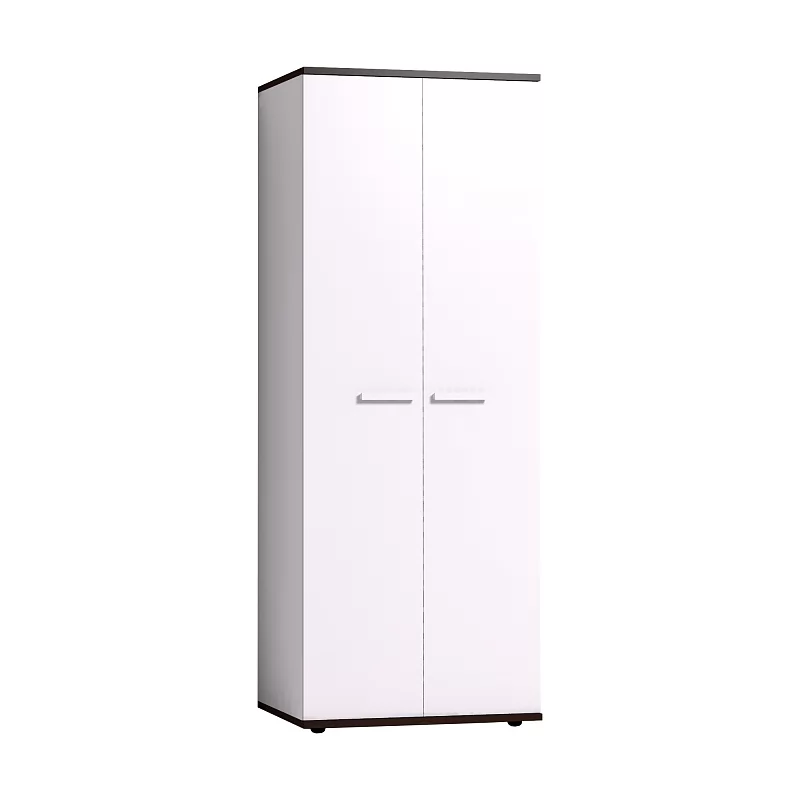 Двустворчатый Норвуд 12 Шкаф для одежды в белом декоре будет уместен как в гостиной, так и в спальне. Контрастный белому декор Орех шоколадный верхней и нижней деталей шкафа придает изюминку этому модулю. Внутреннее наполнение небольшого шкафа состоит из стационарной штанги длиной 757 мм и верхней полки. Распашные фасады шкафа открываются за светлые ручки из массива дерева.