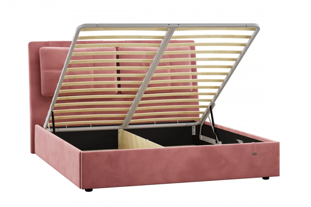 Подъемный механизм легок в управлении, а вместительный короб внутри кровати подойдет для хранения подушек, белья и других вещей.