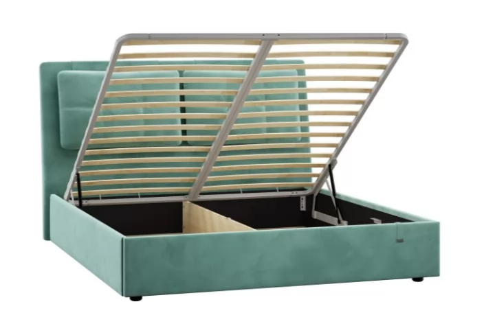 Подъемный механизм легок в управлении, а вместительный короб внутри кровати подойдет для хранения подушек, белья и других вещей.