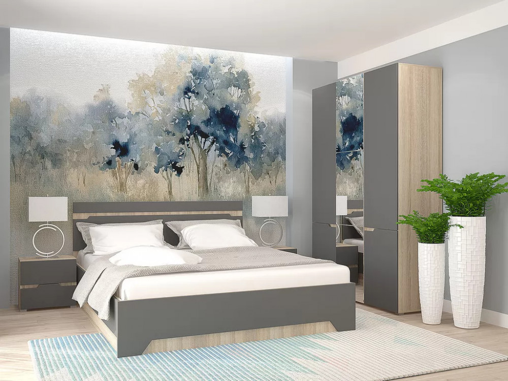 Спальный гарнитур с 3-х створчатым шкафом Анталия Сонома-Графит софт в Тобольске